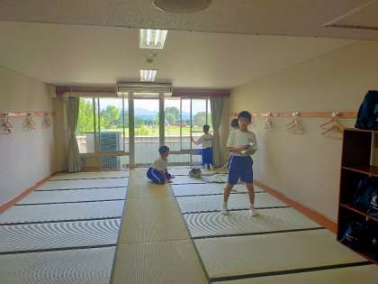 このあとは、チェックを受けて、芝生の広場に集合です!