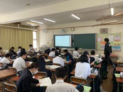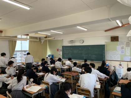 写真は上から3年生数学、2年生英語、2年生国語の4限目授業の様子です。