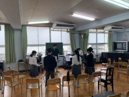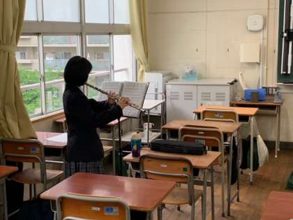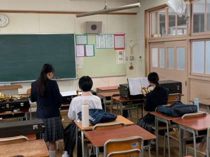 校舎内では、吹奏楽部が活動です。各パートで分かれての練習です。