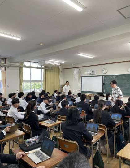 1年生の6限目はパソコンの設定作業をしました。設定の操作を聞きながら、各クラス丁寧に作業に取り組んでいました。