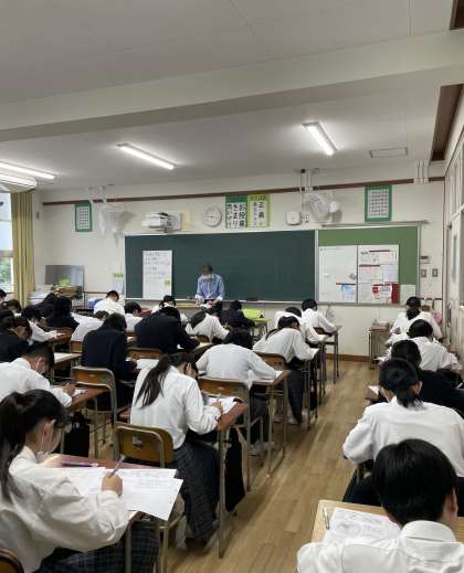 1年生は、中学校に入って初めての中間テストです。緊張感のなか、国語・社会の教科を受けました。落ち着いた中で、テストが実施されています!1年生、さすがです!テスト勉強をして、精一杯頑張って欲しいと思います!