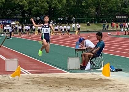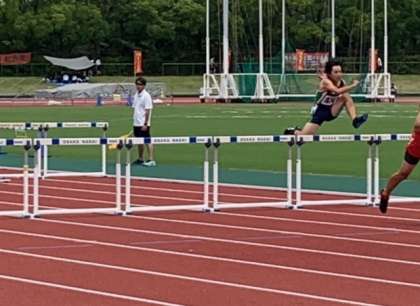 写真上から、共通男子走幅跳、1年女子100m、共通男子110mHの様子です。110mHは決勝に残りました。
