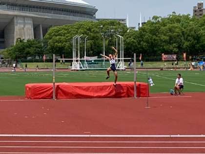 陸上競技部、共通男子走高跳は、1m90cmの好記録で優勝しました。