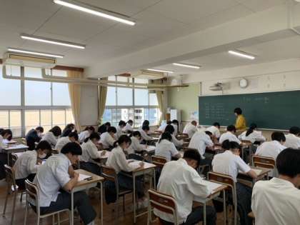 土日に大阪市春季総体に出場した生徒もいますが、みんな集中して受けています。