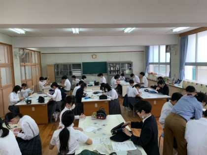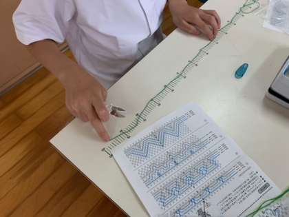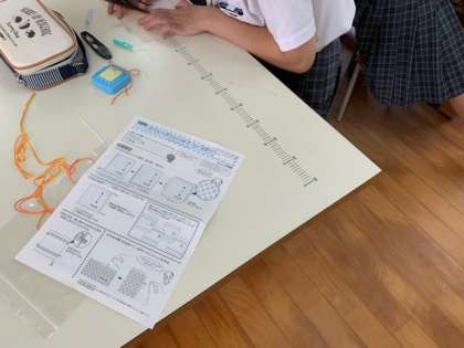 2年生家庭科の授業では、「スウェーデンししゅうコースター」を作成しています。なかなか難しいようです。