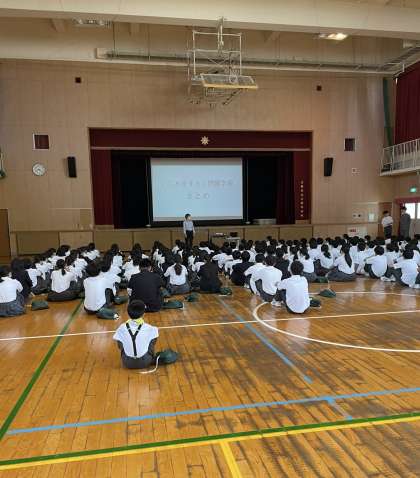 今回の学年集会ではいじめについての学習のまとめをしました。村上先生から学習の成果と今後の課題のお話がありました。それと鈴木先生から、昼休みの過ごし方についてお話しがありました。
