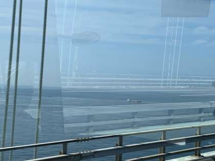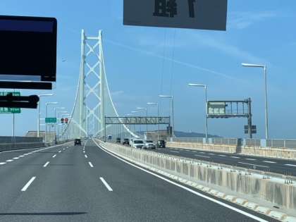 出発から1時間、阪神高速を走り、明石海峡大橋を通過中です。