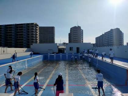 このあと、水を入れ替えて、プール開きの準備が整います。