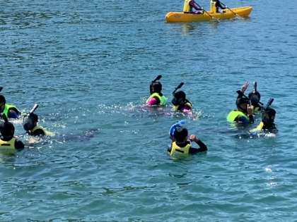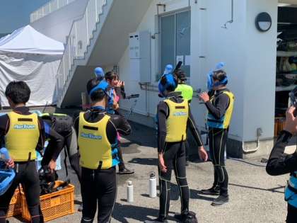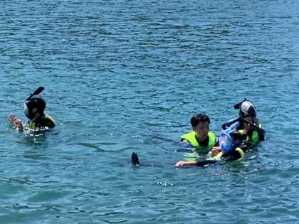 太平洋の荒波!? ではなく穏やかな波の中、楽しんでいます。