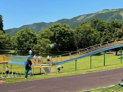陶芸少し早く終わったので、アスレチックを楽しんでいます。