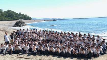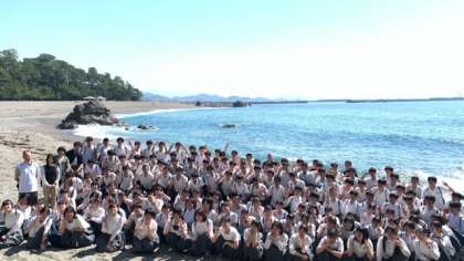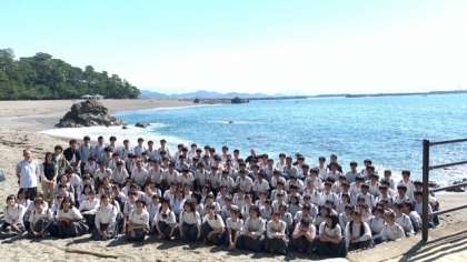 全員で記念撮影、「は〜い、ポーズ!」