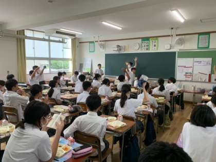 1年生、おかわりの手がたくさん上がっています。