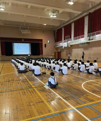 1年生の2時間目に防犯教室が行われました。SNSの使い方や被害者にならないように、警察の方から、リアルな話をたくさん聞かせていただき、みんな真剣に聞いていました。