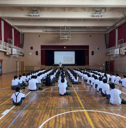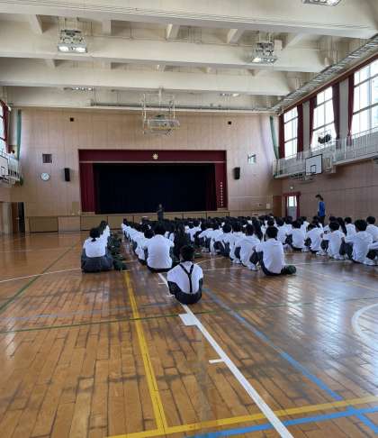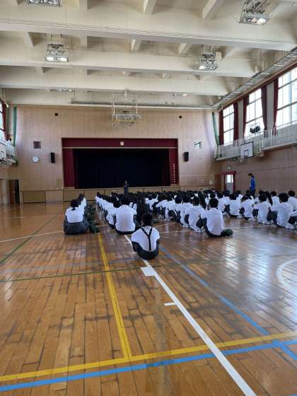 1年生は1時間目に学年集会を行いました。夏休みに関連して、色んな先生からお話がありました。最後に、鈴木先生から『1学期にできたことを、2学期にも継続してそのままやり続けてほしい』とお話がありました。そして、夏休みの中で『何か一つ!頑張ることを決めてやってみてください』とお話がありました!