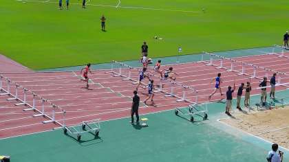 写真は男子110mハードル、男子四種競技走高跳のようすです。