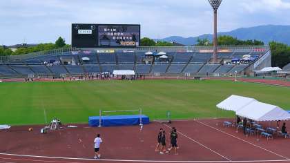 京都・西京極陸上競技場にて、近畿中学総体が開催されています。八阪中学校からは男子走高跳に選手が出場しています。
