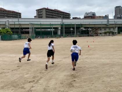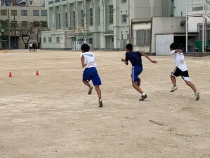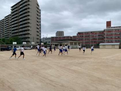 陸上部(中長距離以外)は、アップの後、100mのタイムトライアルをしています。追い風のおかげで好タイムが出ています。