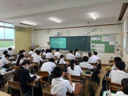 写真は、上から2年生英語、1年生数学、1年生国語の授業の様子です。
