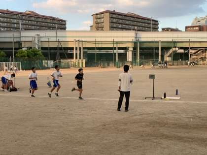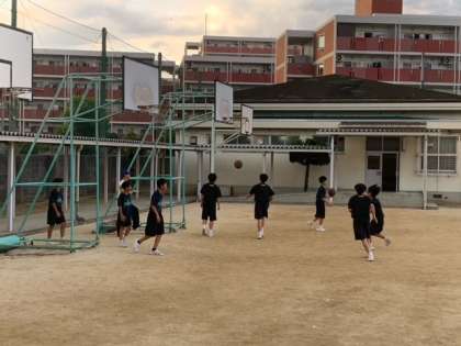 グラウンドでは、野球部、陸上部、男子バスケットボール部が練習中です。