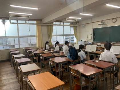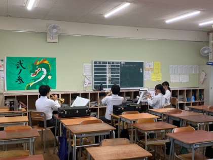 「プレゼン八阪」(文化祭)まで1ヶ月となりました。吹奏楽部はパート別練習中です。