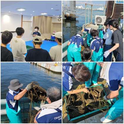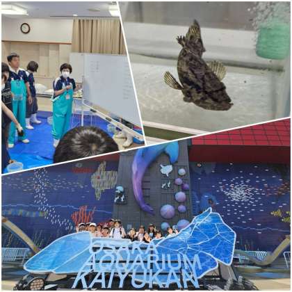 本日、3回目の海遊館連携学習会を実施しました。今回は海遊館前の岸壁に沈めた生き物捕獲用のカゴに入った生き物の採集調査をしました。この時期は海水温が高く、水中の酸素量が不足するため生き物の数が減少する傾向にあります。