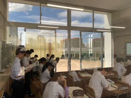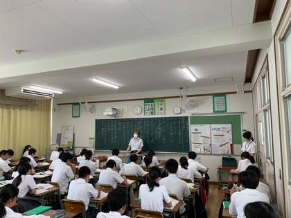 各授業に教育実習生が入り、先生方の授業を見学しています。教材の内容だけでなく、授業の進ませ方や子どもたちへの問いかけ方など、いろいろなことを学習してほしいです。