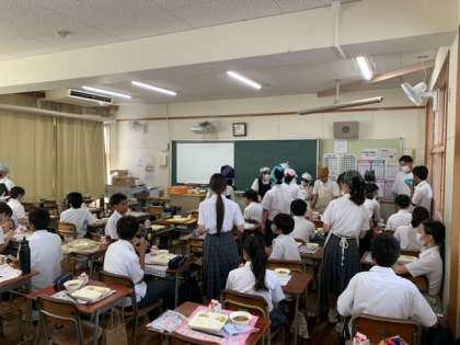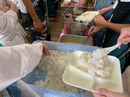 ごはん、牛乳、マーボーなす、ツナと野菜のいためもの、焼きさつまいもの甘みつかけです。