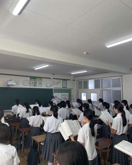 5時間目は、プレゼン八阪の歌の練習をしました。各クラス歌のパートに分かれて、練習開始です!