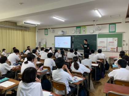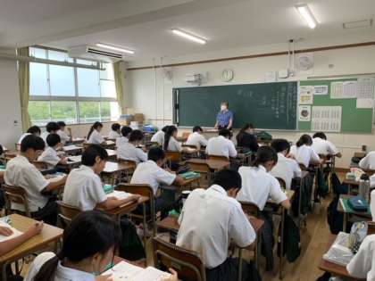 1年生の授業、写真上から、国語、数学、保健体育の授業です。プレゼン八阪の準備もありますが、集中して頑張っています。