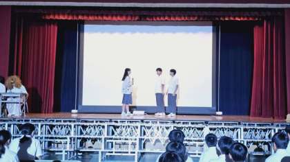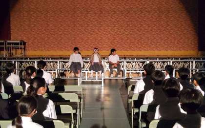 生徒会より、上演中のマナーやエチケットについて、寸劇で注意がありました。