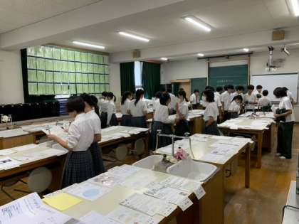写真上、1年生理科の夏休みの自由研究と2年生国語のオリジナル短歌の展示です。