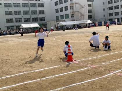 借り物競争 国語の先生、書道部の顧問の先生で2回走った先生もいます。お疲れ様でした。