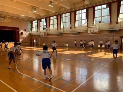 1年生の保健体育の授業、女子はグラウンドでハードル、男子は体育館でバレーボールです。かなり過ごしやすくなって来ました。