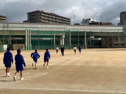 男子は体育館でバスケットボール、女子はグラウンドで、50mの加速走と走幅跳、元気いっぱいです。