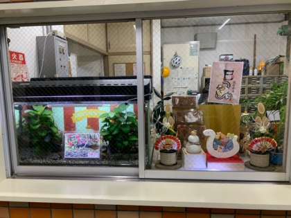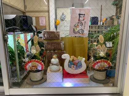玄関横に今月も管理作業員さんが、正月バージョンの飾りを作ってくれています。