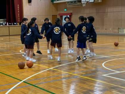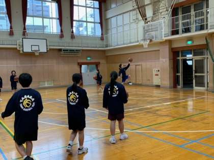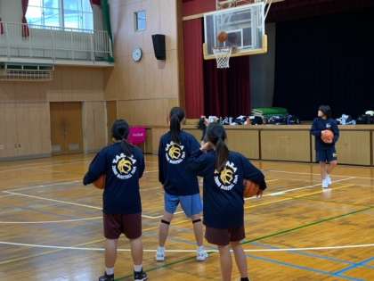 女子バスケットボール部です。1年生と2年生に別れてシュート練習をしていますが、やはり2年生の方が流れがスムーズですね。