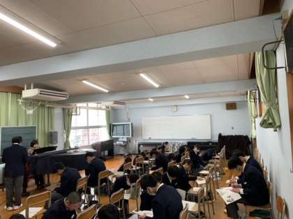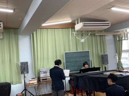 音楽の授業です。卒業式に歌う「旅立ちの日に」についてプリントで学習しています。しっかり歌詞の意味も考えてこの後練習して行きます。