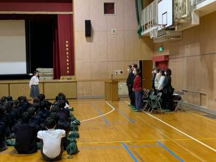 30日(木)6限に実施しました。薬物の危険性・有害性についての正しい知識の認知徹底と薬物に手を出さないための規範意識の向上を図るため、福島区保護司会、更生保護女性会の皆様に来ていただき講話等をしていただきました。