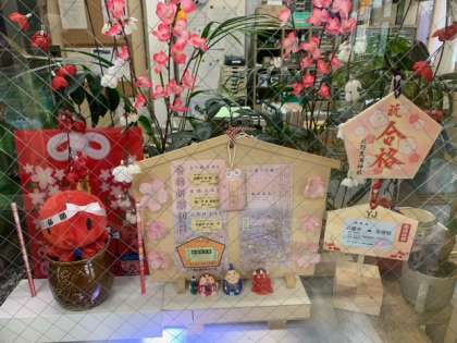 玄関横、水槽の飾りを管理作業員さんが新しくしてくれました。今回は高校入試バージョンです。