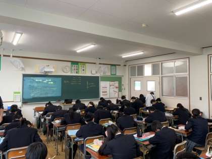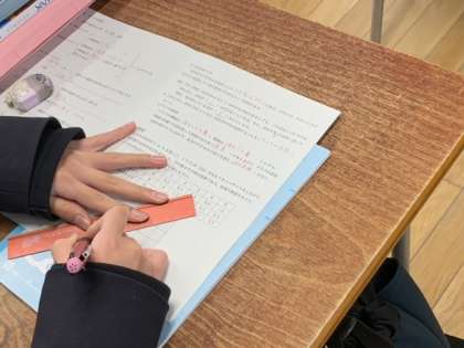1年生理科の授業は「力のはたらき」の単元です。丁寧に考えながらプリント学習を行っています。
