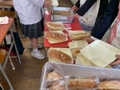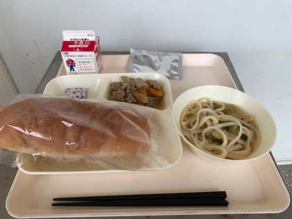 献立は、ぶどうパン、牛乳、豚肉とごぼうの煮もの、