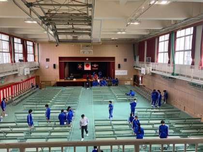 10時開式となります。13日(木)係生徒を中心に式場設営が進んでいます。卒業生のために一生懸命に準備をしています。