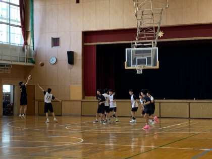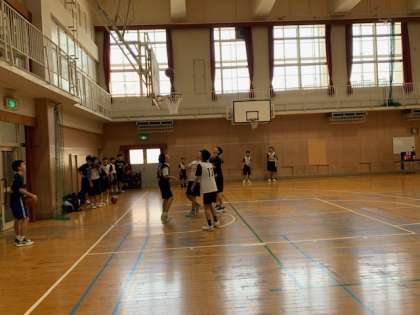 2日(水)午前中、部活動もスタートしています。体育館では男子バスケットボール部が活動中です。