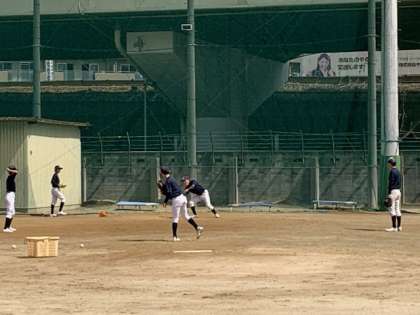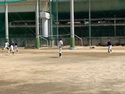 グラウンドでは野球部が活動しています。現在、大阪市ベスト8に進出中、5日(土)の試合に勝てば府大会出場が決まります。