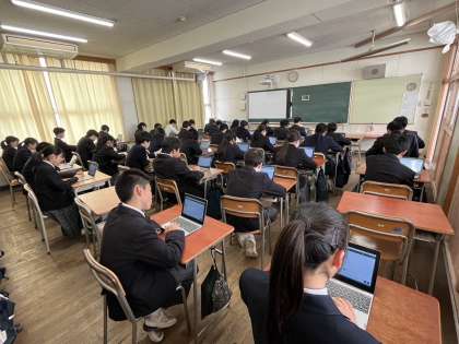 5、6時間目にPCを使用して生徒質問調査、理科の調査を行いました。国語と数学は17日に行う予定です。