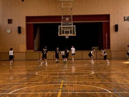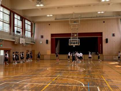 いくつかの部活が春の大会など試合に行っていますし、校内でも盛んに行われています。午前中、体育館では男子バスケットボール部が練習中です。