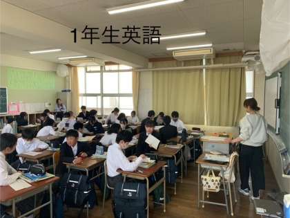 1年生英語の授業はペア学習、しっかり声も出ています。