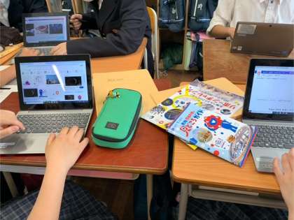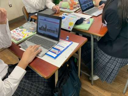 6限目、2年生と3年生は、万博へ行く準備、事前の下調べを行なっています。