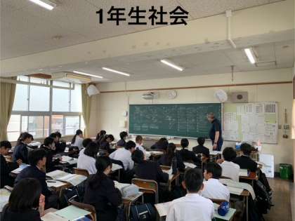 1年生の授業です。教科ごとに担当が変わる授業の形式に慣れてきたでしょうか?