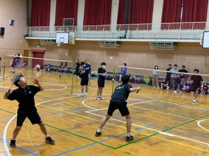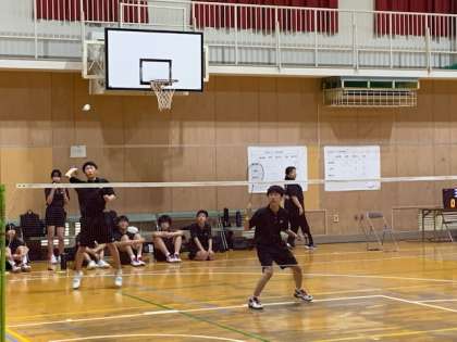午後からは本校体育館で、ブロック男子団体予選を行っています。春日出中学校、新北野中学校、合同チーム、本校の4チームで熱戦が繰り広げられています。